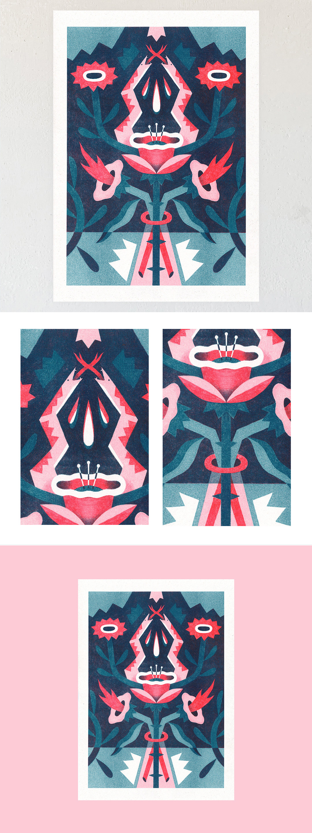 Teal, Red on Favini Crush Grape da 120 g/m²